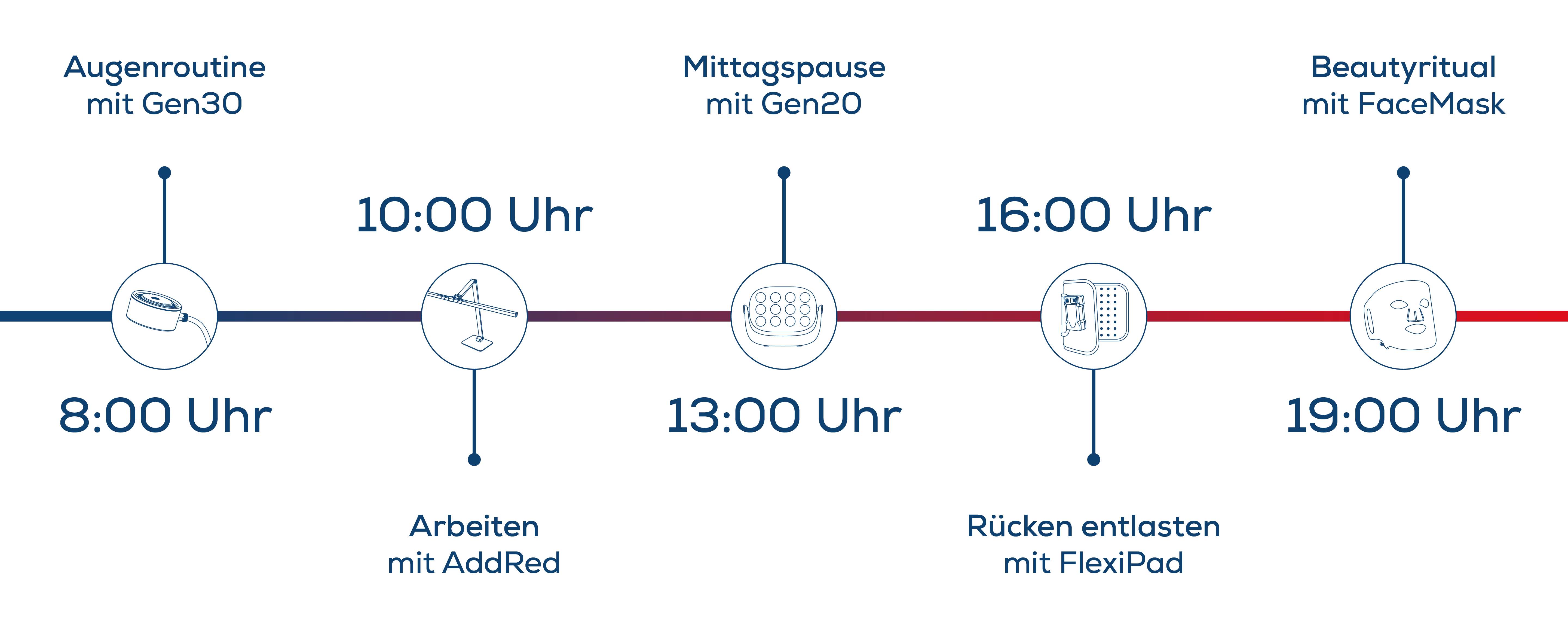 Ob am Arbeitsplatz, Self-Care oder unterwegs: heilys® entwickelt bioaktives Licht für jeden Moment des Tages – mit hochpräzisen Tools, die g deine Rotlicht-Routine sinnvoll erweitern.